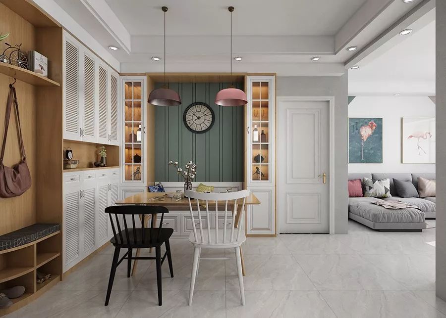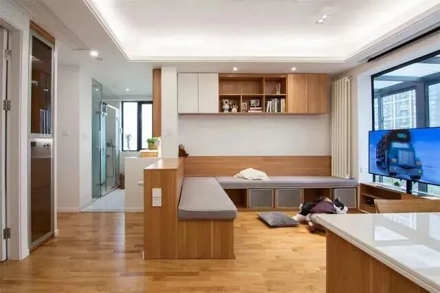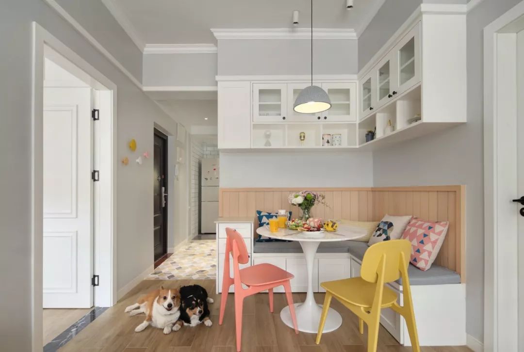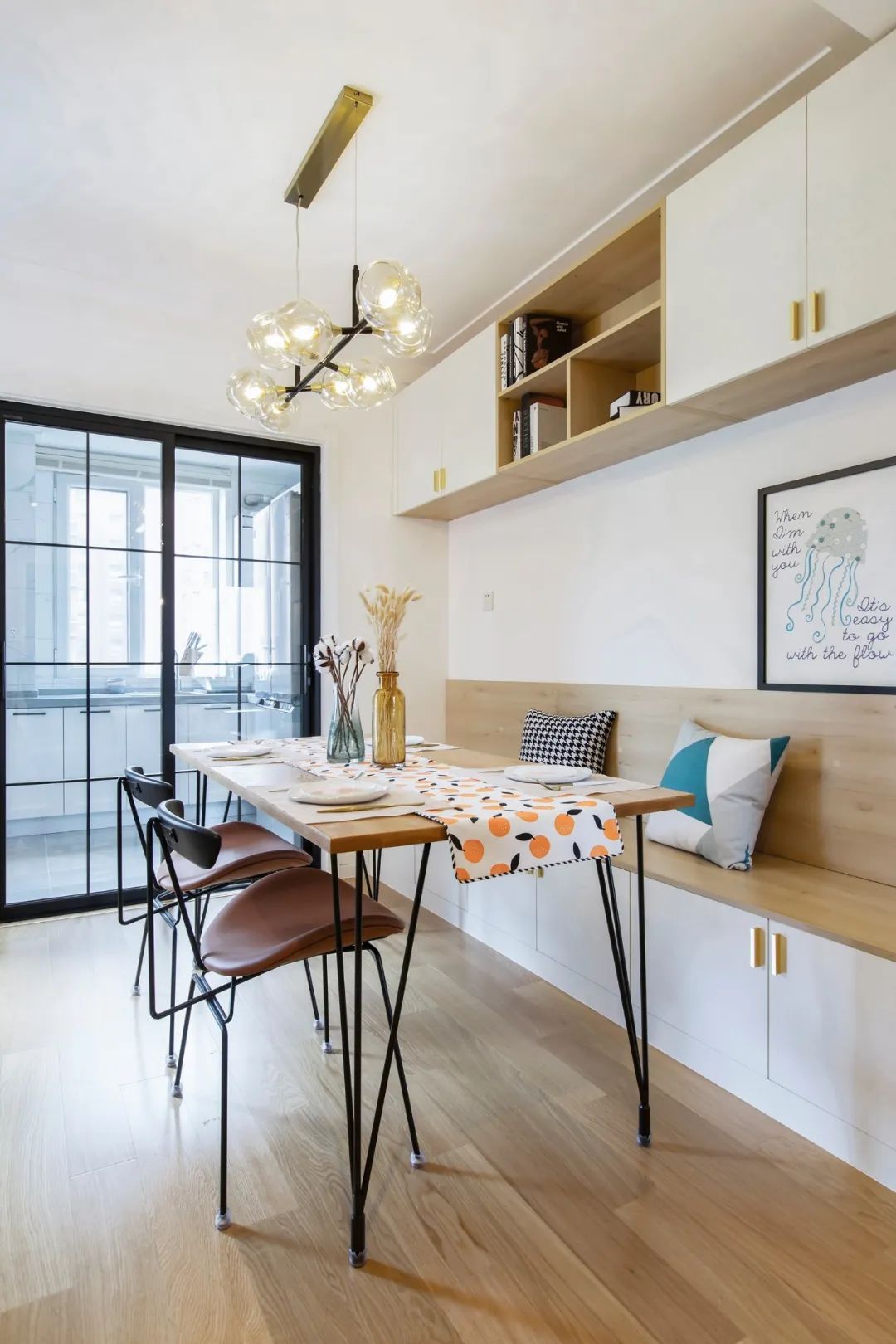 尤其是针对小户型而言,卡座可以增加收纳空间,家里东西比较多的小伙伴,卡座底部的收纳柜或者组合其他收纳柜设计正好解决了收纳问题。